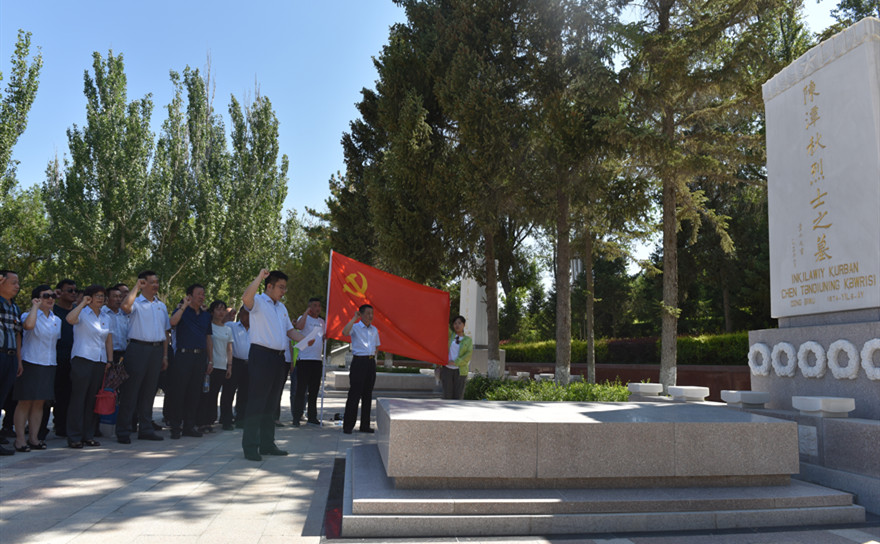 為隆重紀(jì)念中國共產(chǎn)黨成立98 周年,回顧黨的光輝歷程,謳歌黨的豐功偉績,增強廣大黨員的光榮感、使命感,2019年6月27日上午十點半,在黨總支書記彭超同志的帶領(lǐng)下,北園春黨總支全體黨員及入黨積極分子43人參觀位于燕兒窩的烈士陵園。