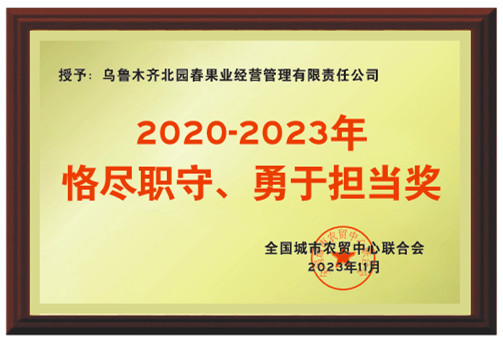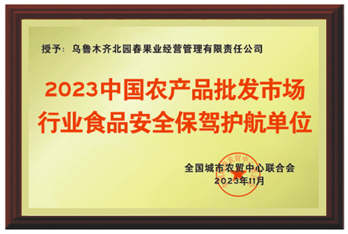 會(huì)上,全國(guó)城市農(nóng)貿(mào)中心聯(lián)合會(huì)對(duì)行業(yè)領(lǐng)域優(yōu)秀單位進(jìn)行了表彰。北園春市場(chǎng)被授予“2020-2023年恪盡職守、勇于擔(dān)當(dāng)獎(jiǎng)”、“2020-2023年積極奉獻(xiàn)獎(jiǎng)”、 “2023中國(guó)農(nóng)產(chǎn)品批發(fā)市場(chǎng)行業(yè)食品安全保駕護(hù)航單位”榮譽(yù),以表彰北園春市場(chǎng)在三年疫情中能夠積極應(yīng)對(duì)疫情帶來(lái)的挑戰(zhàn),保障北園春市場(chǎng)正常運(yùn)行和農(nóng)產(chǎn)品供應(yīng)工作中,堅(jiān)守崗位,全力以赴。